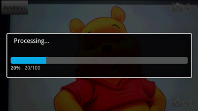 撮影後は処理中を表すダイアログが開きます。処理が終わるまで待ってください。